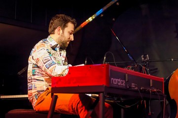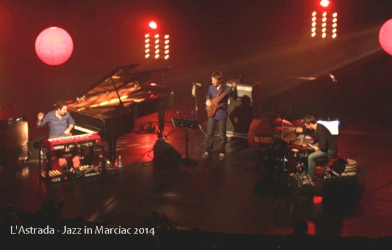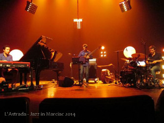 « On parle là, tout de même, du groupe lauréat du dernier Concours National de jazz de La Défense. L’humilité et la fraîcheur juvénile avec laquelle le pianiste et organiste se présente au public de l’Astrada dévoile rapidement une étonnante sûreté de toucher et la palette harmonique d’un musicien qui en sait déjà long. La justesse du placement collectif est à l’avenant, alors qu’on n'est qu’à l’orée d’un parcours qui se révèlera sans faute tout au long d’un étourdissant slalom dont les portes jalonnent un répertoire entièrement original. Et la pente est très raide, faite d’une alternance de métriques impossibles, d’alternances ou renversements de perspectives toujours parfaitement scénarisés et rendus par les titres (Parallel Spaces, ou le tryptique Taking off – Plane – Crash Landing) Ce qui pourrait n’être qu’habile ou impressionnant prend une dimension supplémentaire dans la mise en œuvre collective, car ces structures ne sont jamais qu’un prétexte au jeu, et à une performance de chaque instant qui est le fruit d’un groupe incroyablement complice et soudé. Il faudrait encore décrire l'énergie et la qualité d'attaque particulièrement développées à l'orgue. Les regards échangés avec Rémi Bouyssière et Martin Wangermée, tous deux d’une précision et d’une pertinence exemplaire, ne sont que la partie visible de la qualité d’interaction qui fait les trios d’exception. Difficile d’en faire une réserve, mais dans ce contexte j’ai parfois peiné à trouver mon compte de « simple auditeur » dans un propos tendu et concentré à l’extrême, le temps pouvant manquer pour équilibrer, à l’écoute, ces exigeantes qualités et le relâchement qui offrirait des pauses à cette concentration. Raison de plus de se précipiter sur les enregistrements disponibles ou à venir de ce trio, et de les goûter dans un temps moins contraintUne énergie spiralée s’élève au-dessus du trio avant de couler telle une lave bouillonnante jusqu’aux oreilles des spectateurs... »
