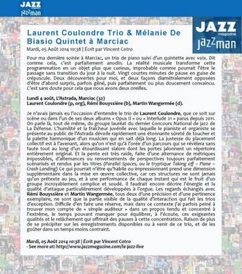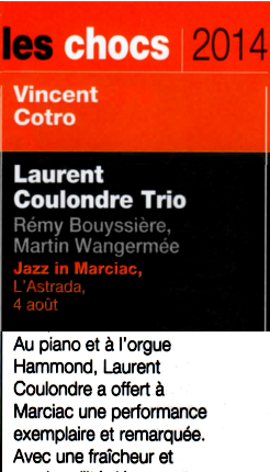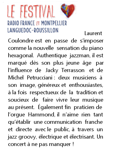 France Musique 2 juillet 2015 La matinale Culturelle invité Laurent Coulondre Trio écouter un extrait |